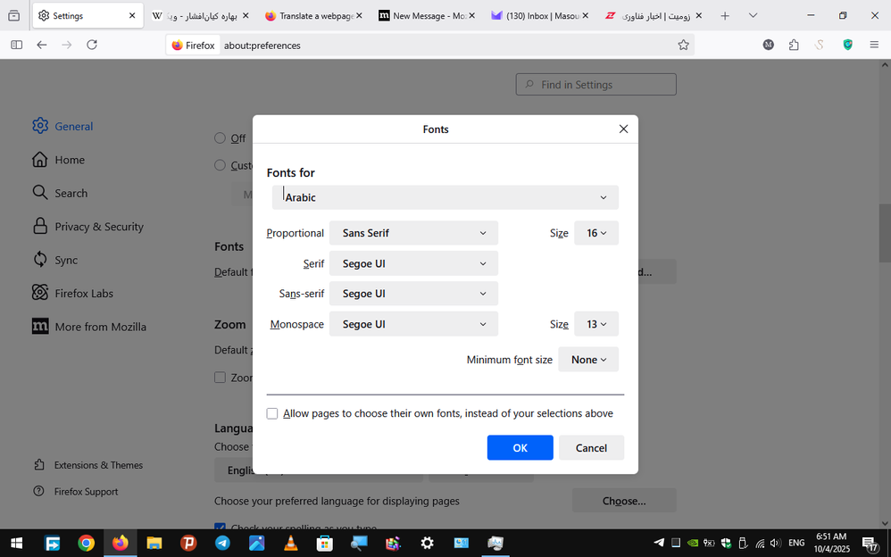 Also Firefox should use a better default font for Persian-Arabic font instead of Windows or Linux default font.