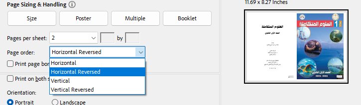 When printing a PDF I need to reverse the page order, to make the first page on the right instead of left.