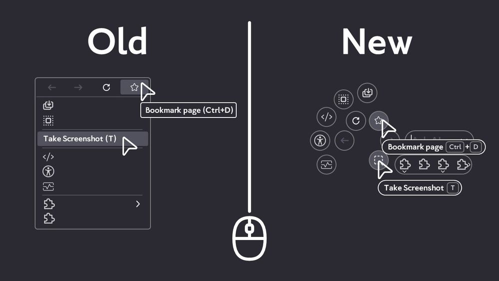 - If there are shortcuts available, they will be displayed more clearly (Firefox rookie friendly).
